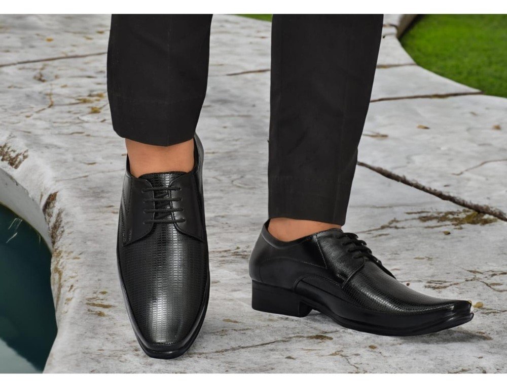 Men’s Faux Leather Formal Shoes, ? Color: Black, ? Material: Faux Leather, ? : 6, ? Closure Type: Lace-Up, ? Heel Type: Flat, ? Type: Formal Shoes, ? Disclaimer: The color of actual product may vary slightly from the images provided due to photographic lighting conditions and difference in screen resolutions.